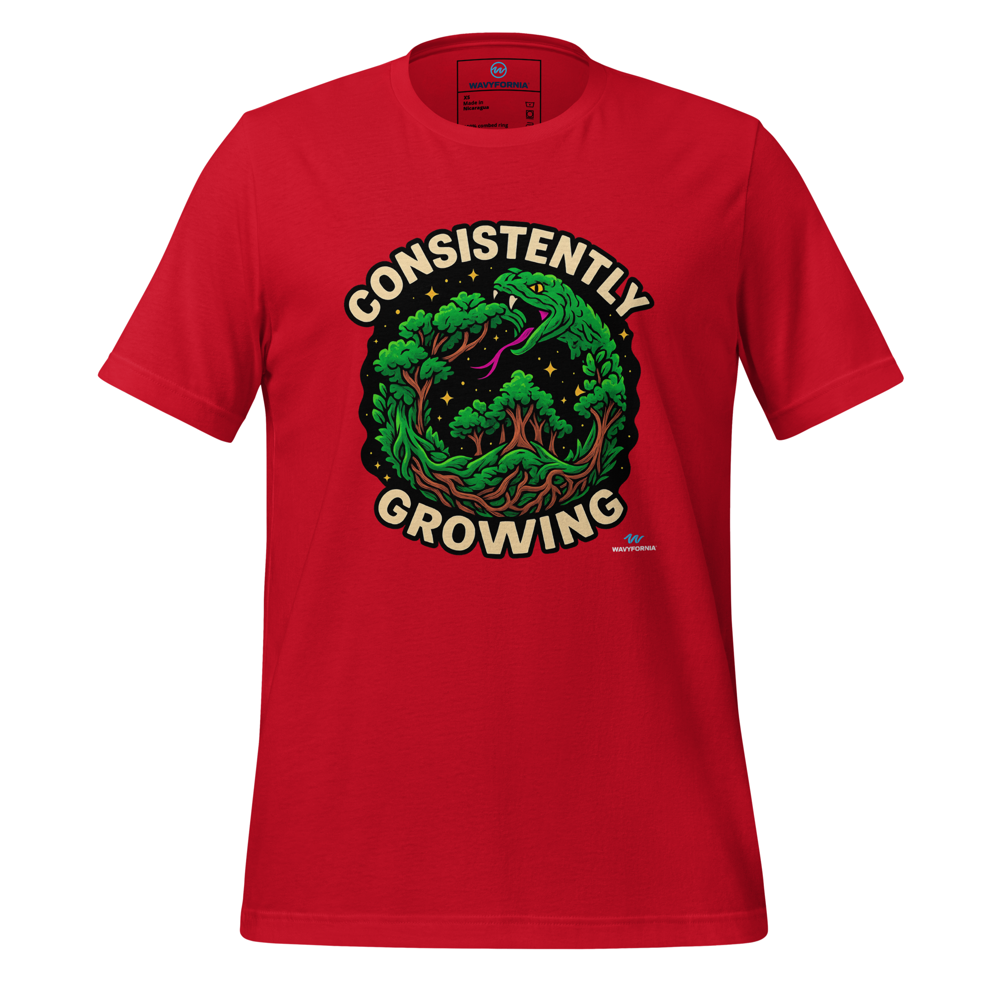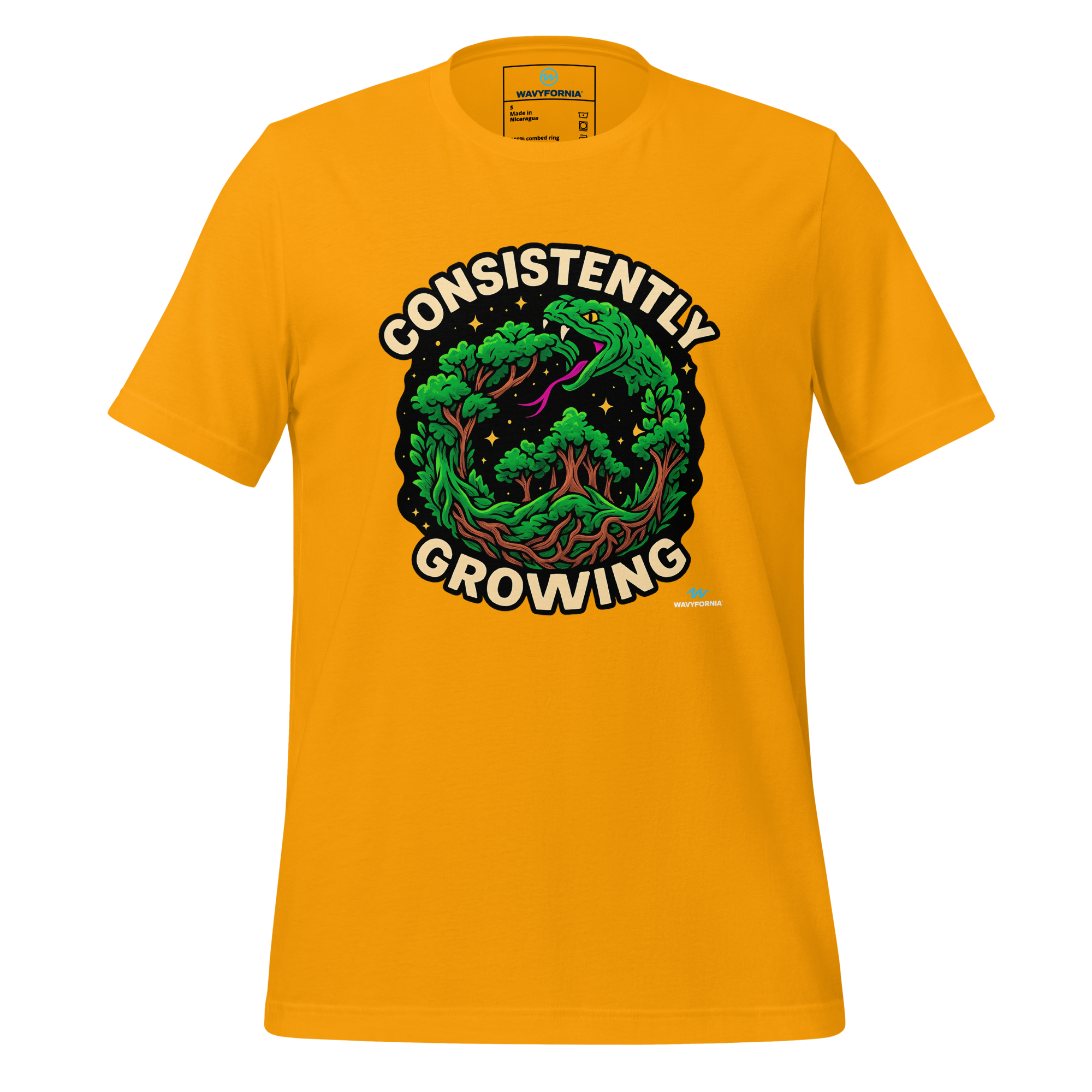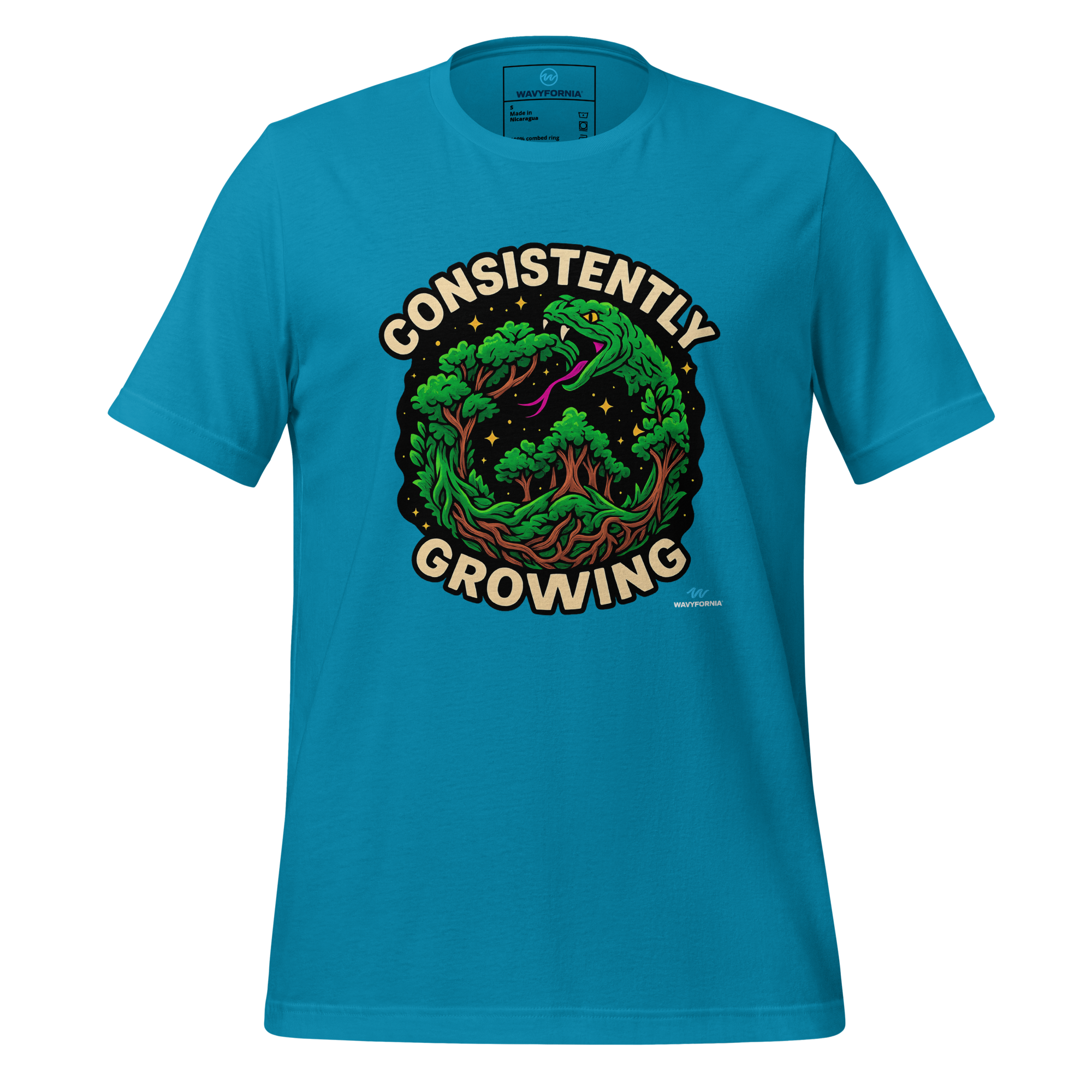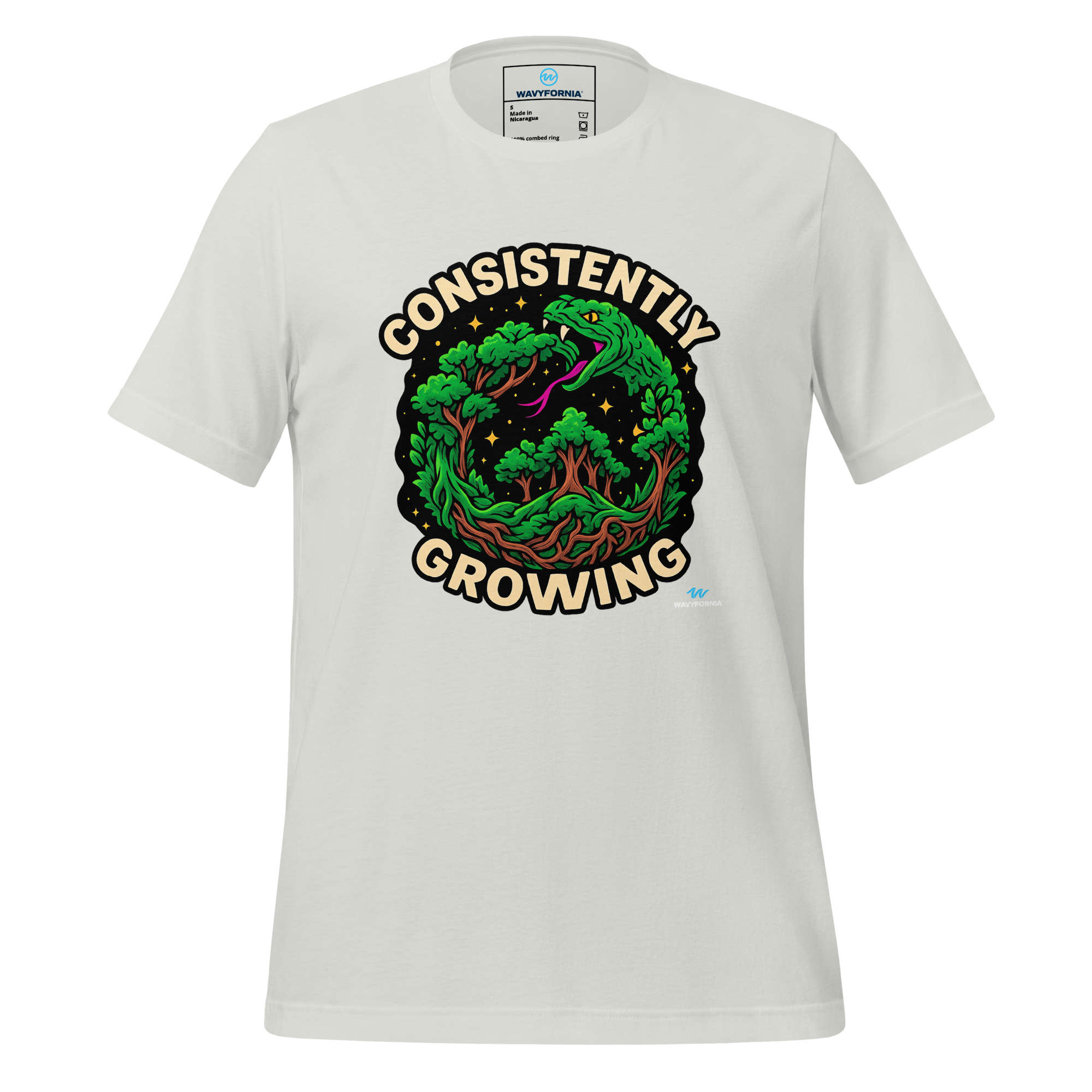 Growth isn’t linear — it’s eternal. The Consistently Growing T-Shirt by Wavyfornia features a mesmerizing Ouroboros scene of a living forest, where nature feeds itself in an endless loop of death, rebirth, and renewal.